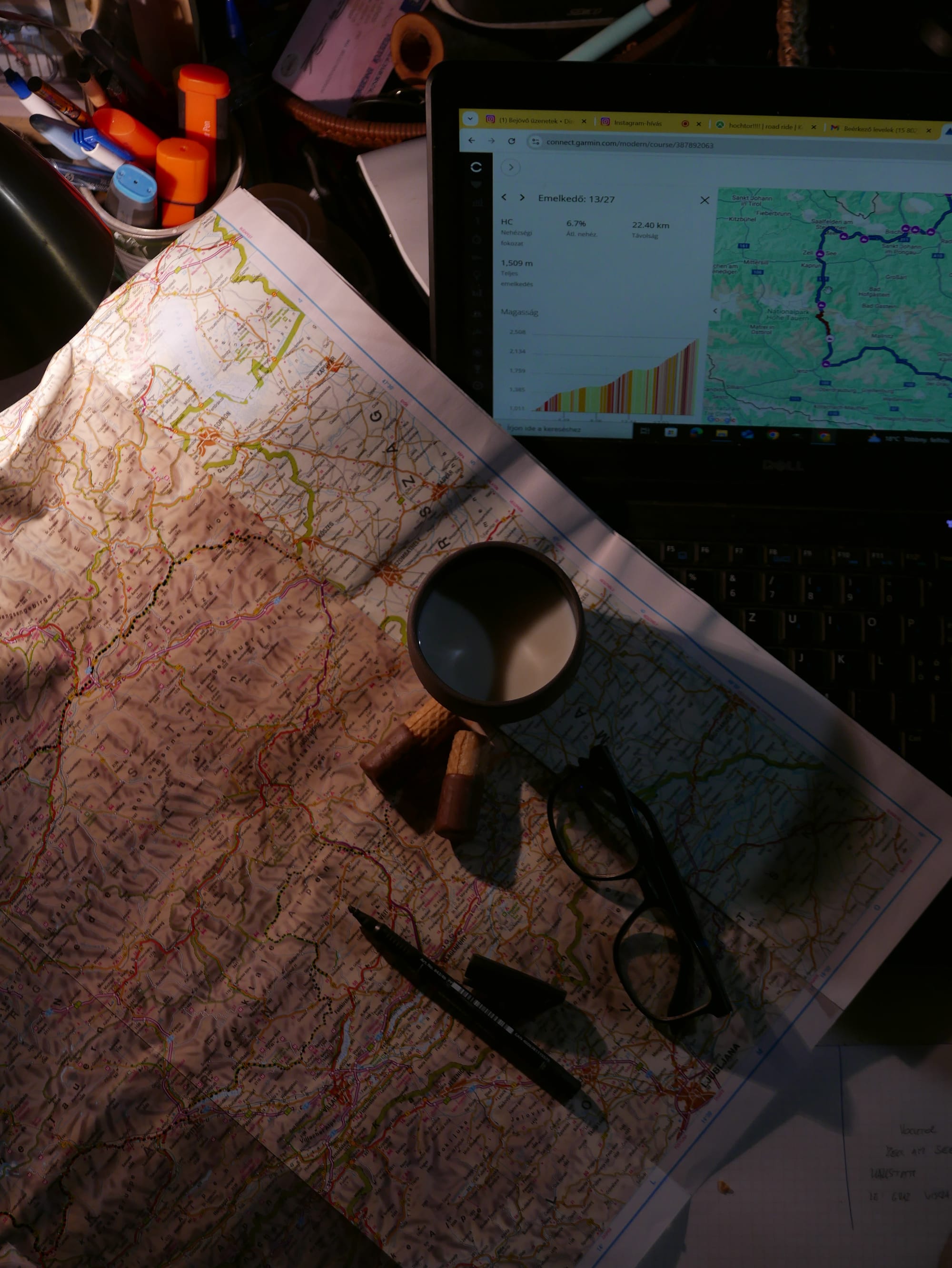 Ez klasszikusan indult, este asztal mellett, térkép felett megrajzoltam az utat, majd felvittem- igazítottam rajta gpx-ben, hogy a gps-re is átrakhassam. Lett belőle négy nap, 687km meg 9000m +szint.